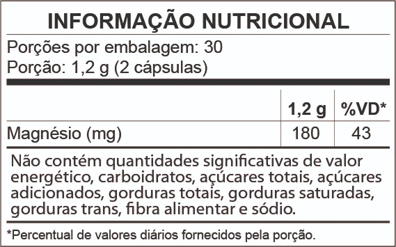 Óxido de magnésio, malato de magnésio, antiumectantes silicato de magnésio, estearato de magnésio, dióxido de silício.